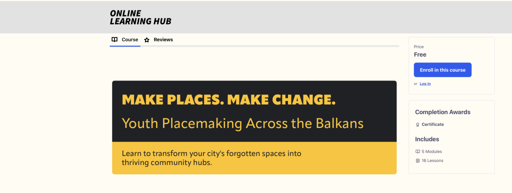 The Placemaking Connected e-learning course is designed for young people who want to learn how to actively shape their surroundings and contribute to positive change in their cities and neighbourhoods.